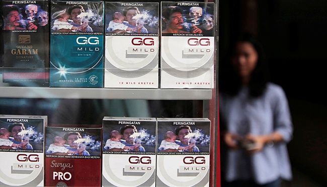 Ilustrasi peringatan kesehatan di bungkus rokok.. REUTERS/Beawiharta