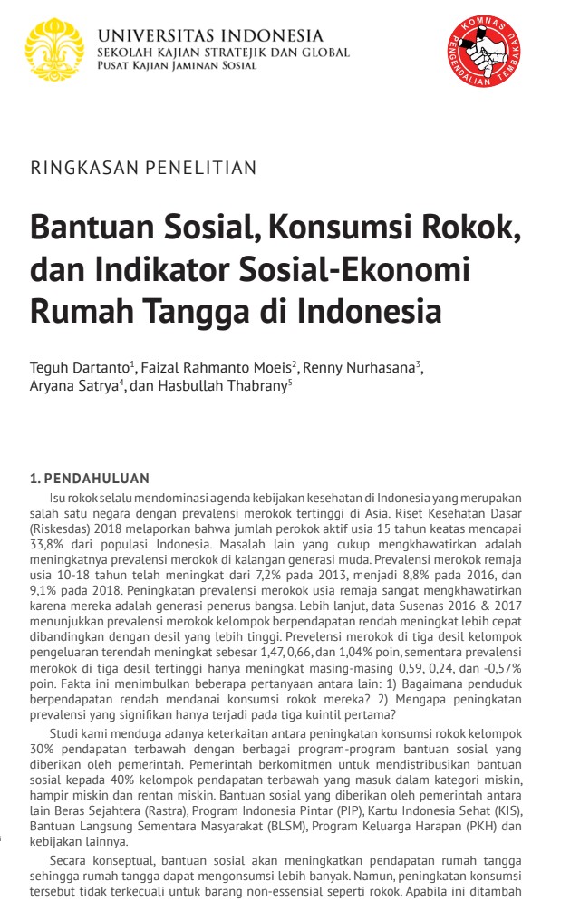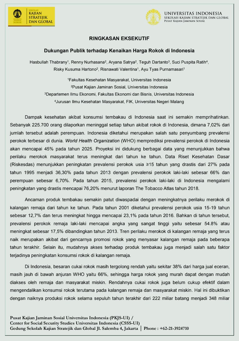 Isu rokok selalu mendominasi agenda kebijakan kesehatan di Indonesia yang merupakan salah satu negara dengan prevalensi merokok tertinggi di Asia. Riset Kesehatan Dasar (Riskesdas) 2018 melaporkan bahwa jumlah perokok aktif . . .